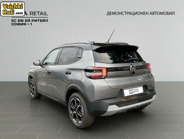 | Демонстрационен автомобил Фабрична гаранция до 12. 2029 г. или 150 000 км. * Батерията с гаранция за 70% от своя капацитет на зареждане за 8 години или 160 000 км. Референтен номер 2501296 Работно време от 09: 00 до 19: 00 Събота от 09: 30 до 16: 30 АУДИОКОМУНИКАЦИЯ * 3 броя USB (USB тип C за зареждане отпред на централната конзола + 2 броя USB тип С за зареждане отзад) * 6 тонколони * Citroen Head up дисплей (TFT Приборен панел Citroen Reflection Unit (CRU)) * My CITROEN Drive (Навигация на 10'' HD сензорен екран, безжичен Mirror Screen (Android Auto и Apple CarPlay ), радио MP3 с цифров радиотунер, уравление от волана. Hands Free Bluetooth, e-Call (спешни обаждания), b-Call (пътна помощ на Citroen)) * USB (тип С за зареждане + данни, отпред) * Безжично зареждане на смартфон * Дистанционно управление на зареждането (изисква приложение MyCITROEN и абонамент) * Индикатор за външна температура * Трип компютър ЕКСТЕРИОР * B и С -колони в черен лак * Арки на калниците в черен цвят * Брони в цвета на купето * Дръжки на вратите в цвят Noir Perla Nera * Лайстни на страничните стъкла черен мат * Пакет Color Andre Red (с цветове Bleu Montecarlo и Blanc Banquise) * Пакет Color Blanc Banquise (с цветове Noir Perla Nera и Gris Mercure) * Пакет Color Neon Lemon (с цвят Rouge Elixir и Bright Blue) * Протектори на броните в сив цвят * Релси на покрива * Черупки на огледалата в цвят Noir Perla Nera ИНТЕРИОР * Висока централна конзола с подлакътник и жабка * Волан в синтетична кожа (декор в хром и черен лак) * Вътрешен декор на предните врати в цвят '' Сидерит'' * Декор на бордно табло в цвят '' Сидерит'' * Делима задна облегалка (60: 40) * Джобове на гърба на предните седалки (с допълнителен джоб за смартфон) * Затворена жабка * Контакт 12V * Кора на багажника * Регулируеми по височина задни подглавници * Регулируеми по височина предни подглавници * Тапицирани подлакътници на вратите * Фиксиращи халки в багажника * Хромирани вътрешни ръкохватки на вратите КОЛЕЛА * 17'' лети джанти ATACAMITE (с обработка '' диамант'' ) КОМФОРТ И ФУНКЦИОНАЛНОСТ * Автоматичен климатик (с поленов с филтър с активен въглен) * Акустично предно стъкло * Бордови компютър * Окачване Progressive Hydraulic Cushions * Предни и задни електрически стъкла * Регулируем по дължина и височина волан * Регулируема по височина седалка на водача * Централно заключване с дистанционно управление ОБОРУДВАНЕ * Еднофазен бордови зареждащ модул 7, 4 kW * Кабел за зареждане за Wallbox ( Mode 3, 22KW, 3x32A, 6m) ПОМОЩ ЗА ВОДАЧА * Hill Start Assist * Електроусилвател на волана с променливо усилие * Камера заден ход (включва задни паркинг сензори) * Пакет Safety (Active Safety brake (с видеокамера) + предупреждение за опасност от сблъсък, активна система за следене на пътната лента, предупредение за понижено внимание на водача, разпознаване на знаците за ограничение на скоростта и препоръка, интелигентен регулатор и ограничител на скоростта с препоръка) СВЕТЛИНИ И ВИДИМОСТ * LED дневни светлини * LED задни светлини * LED преден плафон със светлини за четене * LED Фарове * Автоматични чистачки * Автоматично включване на фарове * Електрически, отопляеми и сгъваеми огледала * Електрохромно вътрешно огледало * Затъмнени задни стъкла * Огледало в сенника на водача * Огледало в сенника на пътника * Осветление в багажника СИГУРНОСТ И БЕЗОПАСНОСТ * 2 броя ISOFIX на задната седалка * ABS, ESP, ASR (включва REF - електронно разпределение на спирачното усилие, AFU- завариен спирачен асистент) * Автоматична електрическа паркинг спирачка * Автоматично заключване при потегляне * Задни пиротехнически колани с ограничител на усилието (за с