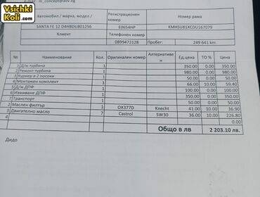 | Продава се Хюндай Санта фе 2.2 197 кс.обслужен напълно на 100% комплект верига ново турбо с 2 години гаранция масло филтри почистени ДПФ и ЕГР профилактика и диагностика за което имам фактури за 9500 лв. предният собственик е сменил съединителя и накладките на ел.ръчна спирачка без наложящи ремонти.ходова част супер .с нови зимни гуми на стойност 950лв..сменени предни и задни накладки.нови спирачни апарати и дискове на стойност 1100 лв.Давам и още един комплект джанти с летни гуми.Всички екстри за модела без обдухване на седалките |