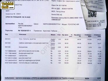 | Току що обслужен в Тойота ТМ АУТО СОФИЯ 10 ГОДИНИ МЕЖДУНАРОДНА ГАРАНЦИЯ КЪМ TOYOTA ЗА ЦЯЛА ЕВРОПА 10 ГОДИНИ ПЪЛНА ГАРАНЦИЯ НА ЦЕЛИЯ АВТОМОБИЛ 10 ГОДИНИ ПЪЛНА ГАРАНЦИЯ НА БАТЕРИЯТА АБСОЛЮТНО ПЪЛНА СЕРВИЗНА ИСТОРИЯ В TOYOTA ГАРАНЦИОНЕН СРОК ОТ 2021 ДО 2031 ГОДИНА ПРОВЕРКА ПРЕДИ ПОКУПКА САМО В ОРИЦИАЛЕН СЕРВИЗ TOYOTA / LEXUS ЧИСТА ЗАСТРАХОВАТЕЛНА ИСТОРИЯ - Без никакви удари, инциденти, градушки, запори, кражби, без връщане на километри и всякакви подобни събития ! - Разполагаме с доказателства и всичко може да се провери единствено в LEXUS / Toyota TM Auto - официален сервиз. ПРОДАЖБА С ФАКТУРА И ДОГОВОР ! НЕ ПЛАЩАТЕ НОТАРИУС - ДИРЕКТНО СЕ РЕГИСТРИРА АВТОМОБИЛА В КАТ БЕЗ НОТАРИАЛНИ ТАКСИ ! Спестявате си 2 500 лв от Нотариус + Спестявате 700 лв от обслужването в Тойота ! Получавате готов гаранционен автомобил ! ЕКСТРИ: Цвят - Бежов ( На слънце е златист ; На сянка е сребрист - Според светлината може и да е двата цвята на веднъж - според ъгъла ) Изключително рядък и хубав на живо цвят. Ниво на оборудване * CLASSY * FACELIFT - [ Автомобила е по-новата версия на модела - С подобрения в Екстериорната, Интериорната визия и функционалността ] ЕКСТРИ АМБИЕНТНО нощно осветление със смяна на цветовете My Toyota App - Приложение за телефона ви чрез което - Подгрявате или Изстудявате автомобила си от приложението преди да се качите в него и други функции. Изцяло Кожен интериор Дишаща кожа / Перфорирана Кожено шито табло с контрастни конци Кожени кори на вратите Кожен мулти волан Ел седалки Електрическа лумбална опора на седалките Подгряване на седалките Подгряване на огледалата Hybrid - Самозареждащ се ( НЕ ползвате контакти ) FULL Driving assistance + Пълния пакет системи за сигурност и по-лесно управление Адаптивен Distronic + Автопилот JBL - Скъпата музика Следене на пътни ленти Разпознаване на пътни знаци BSM - Следене на мъртва зона + предупреждаване при изпреварване RCTA - Rear Cross Traffic Alert - Предпазва изскачащи пешеходци по време на паркиране Автоматично регулиране на огледалата когато паркиране на заден ход + НОЩНО Осветление Оригинална заводска навигация Apple Car play + Android auto Touch Screen Display Bluetooth Audio + Разговори Двузонов климатроник Start Stop бутон По високия клас фарове за модела ( Bi Xenon + LED ) Фабрично с по-новите LED стопове с диоди + леко затъмняване Лети джанти 18ки Toyota Sport SRS Airbags Гласово управление Заводски тонирани стъкла НОЩНО СВЕТЕЩО ЛОГО CHR - Когато отворите врата се визуализира на земята CHR Camera с адаптивни парктроници Безключово отключване и заключване Безключово запалване Автоматично отварящи се и прибиращи се огледала когато отключвате / заключвате автомобила ISOFIX - Бързо закрепяне детски столчета EURO 6D Auto Hold ( Държи спирачката на светофар вместо вас ) HILL ASSIST CONTROL ( Автоматично държи спирачката по наклон с цел по-лесно потегляне по стръмни улици ) Опция - Автоматично сваляне и вдигане на дългите фарове по магистрала Автоматични чистачки Протектор за багажника оригинален на Toyota Пълен резервен оригинален авариен комплект на Toyota Напълно автоматични стъкла GPS ; CD ; AUX ; BLUETOOTH ; DAB ; FM; USB Nanoe Технология - Използва водни частици с размер на нано ниво (оттук и името ( Nanoe ), за да пречиства въздуха в интериора на автомобила. Скъпя и хубава екстра. Декоративните елементи в интериора са направени от ЧЕРНА ПЕРЛА Допълнителен ( B ) режим (режим за рекуперация на енергия) Синьо нощно амбиентно осветление в интериора Черен таван Велурени стелки Автоматичн